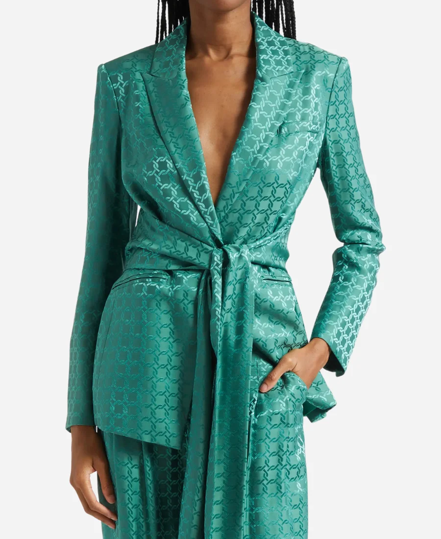 Access Daily 2025 Savannah Chrisley Green Printed Satin Blazer For Sale