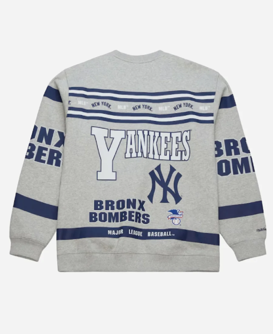 New York Yankees All Over Print Vintage Fleece Crewneck Heather Gray Sweatshirt For Sale