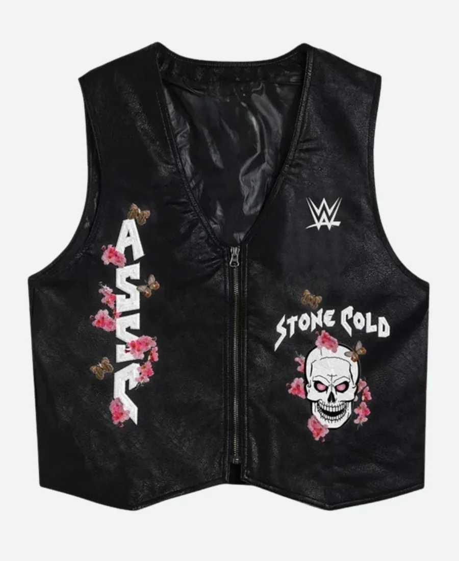 ASSC X WWE Stone Cold Black Leather Embroidered Vest For Sale