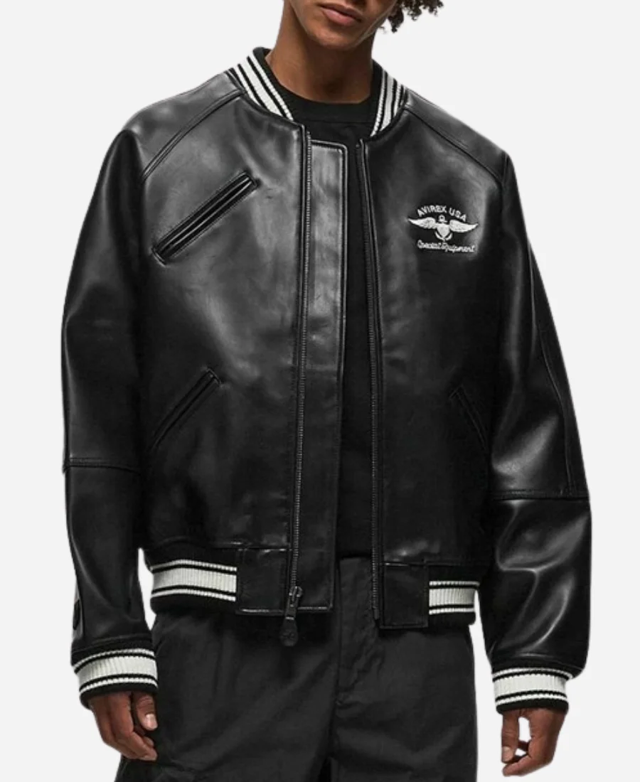 To set a new trend among your homies stylishly, wear the popular and enchanting Avirex Stadium Leather Jacket. A perfect piece of clothing for a modern person, this is what makes you stand out fashionably. Moreover, it comes from the brand Avirex and is now here at Jacket Attire in real leather material. For those who want to make a new style statement showcasing affection for American roots, this black leather imitation is the best choice. On the other hand, it will make you a showstopper, boosting your essence with contemporary charm and captivating flair.