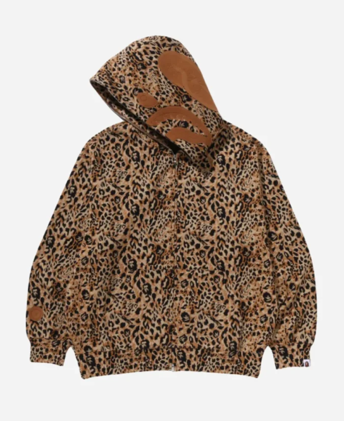 Bape Wild Leopard Pattern Shark Relaxed Fit Full ZiP Hoodie For Sale