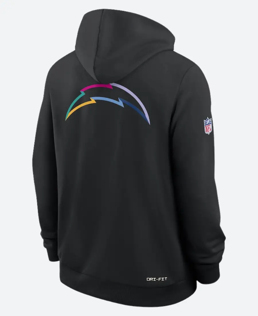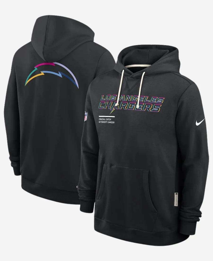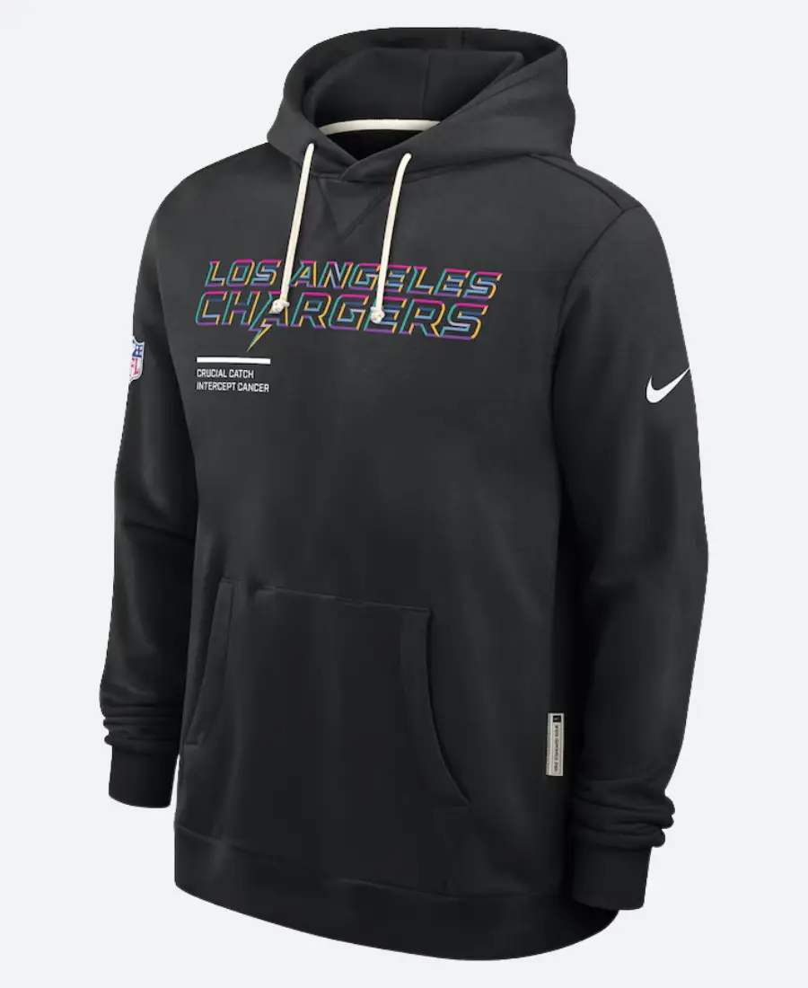 Los Angeles Chargers NFL Crucial Catch Nike Black 2025 Sideline Standard Issue Dri-FIT Hoodie