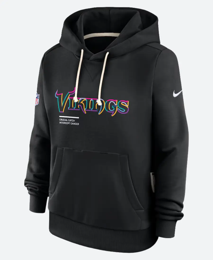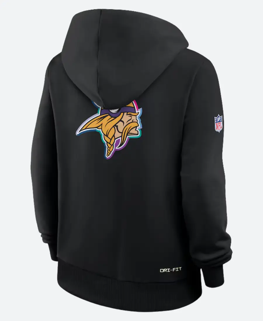 Minnesota Vikings NFL Crucial Catch Nike Black 2025 Sideline Standard Issue Dri-FIT Hoodie