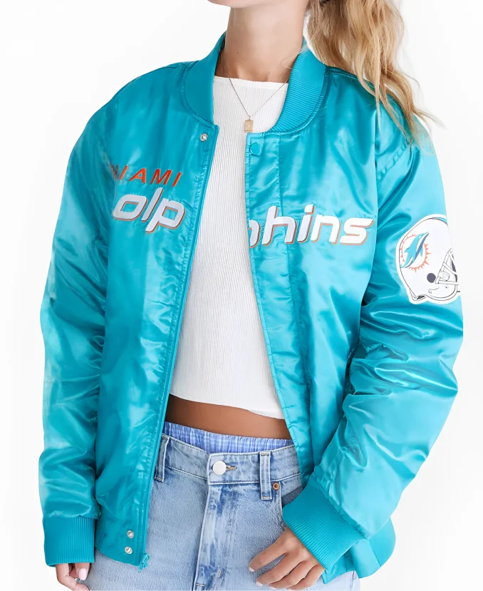 Unisex Miami Dolphins Blue Bomber Satin Jacket For Sale