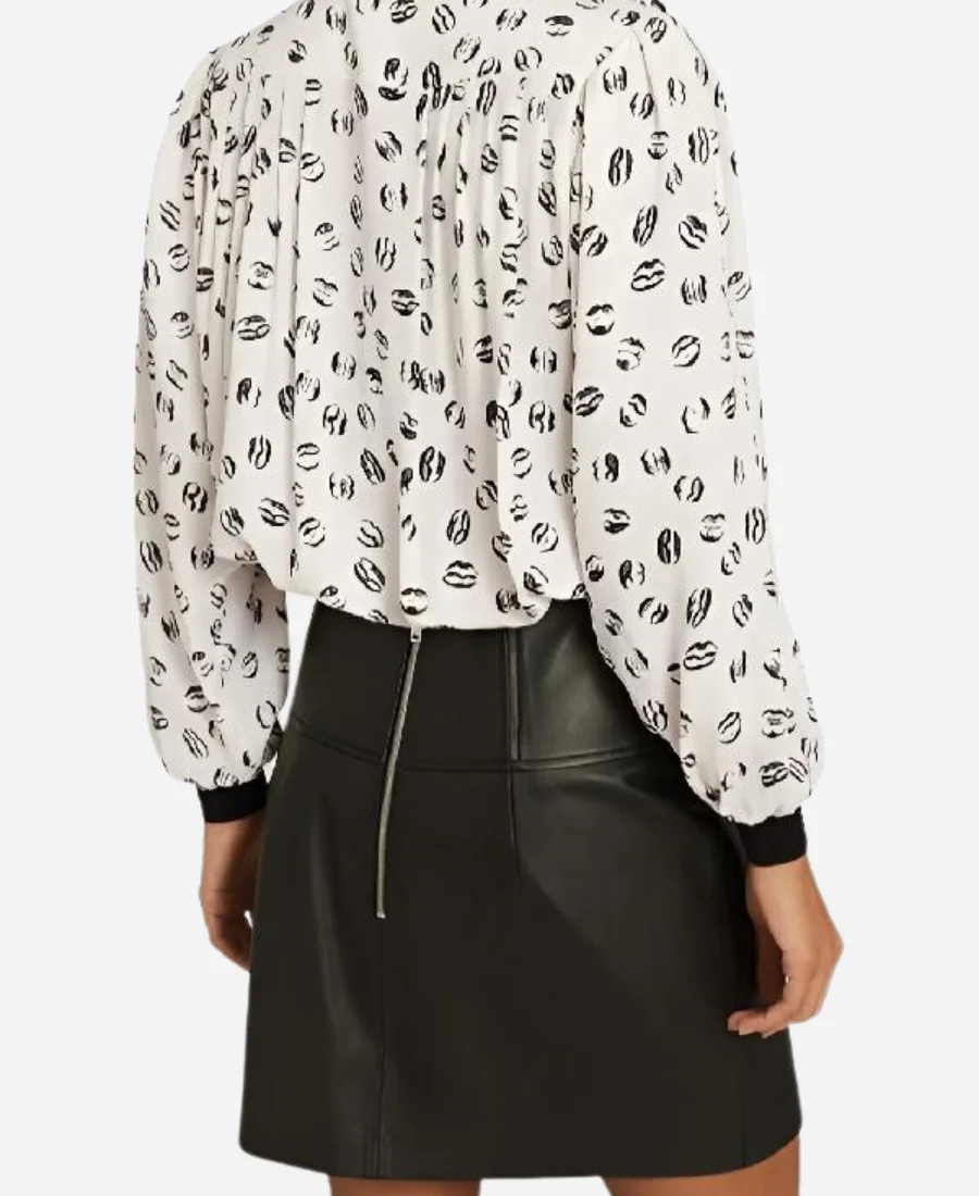Dylan Dreyer The Today Show 2025 Lips Print Long Sleeve Black And White Top