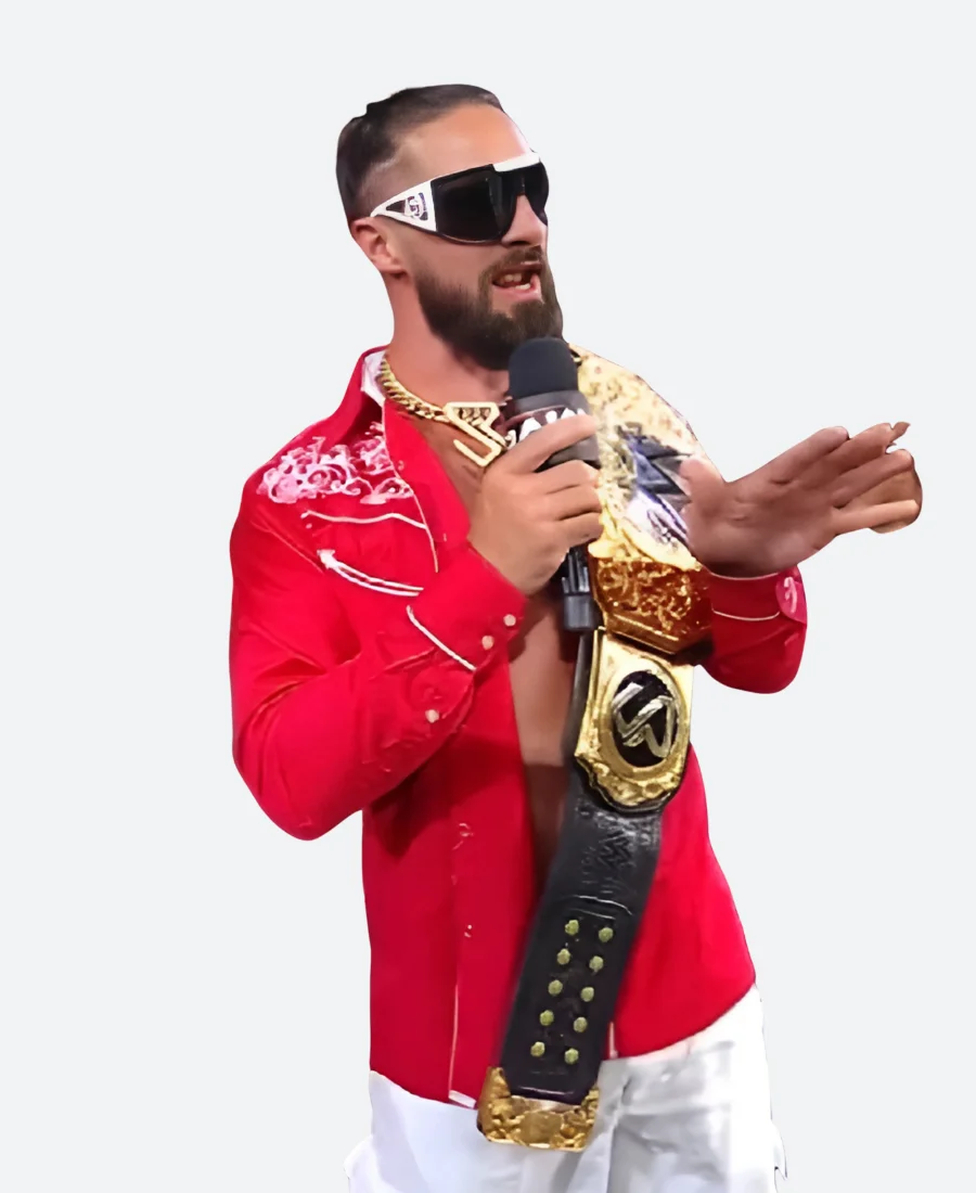 Seth Rollins WWE Raw Red Embroidered Shirt For Sale